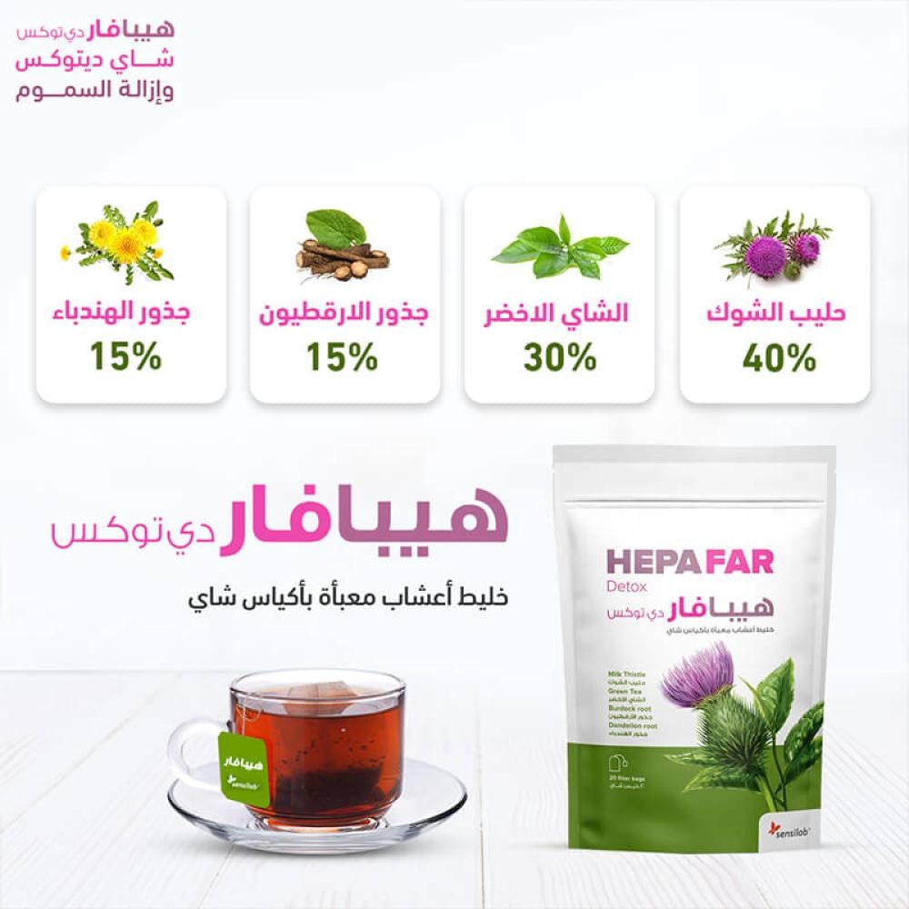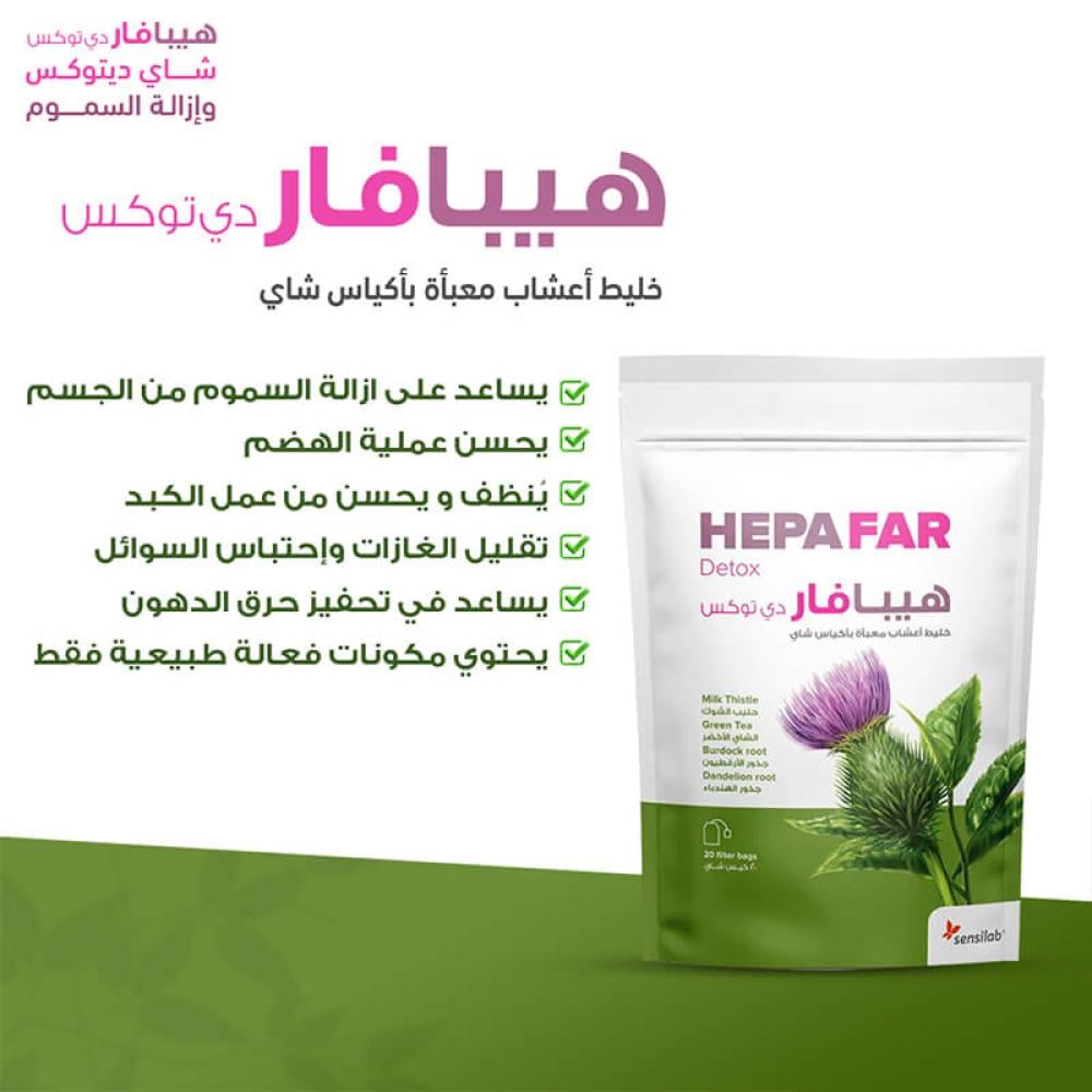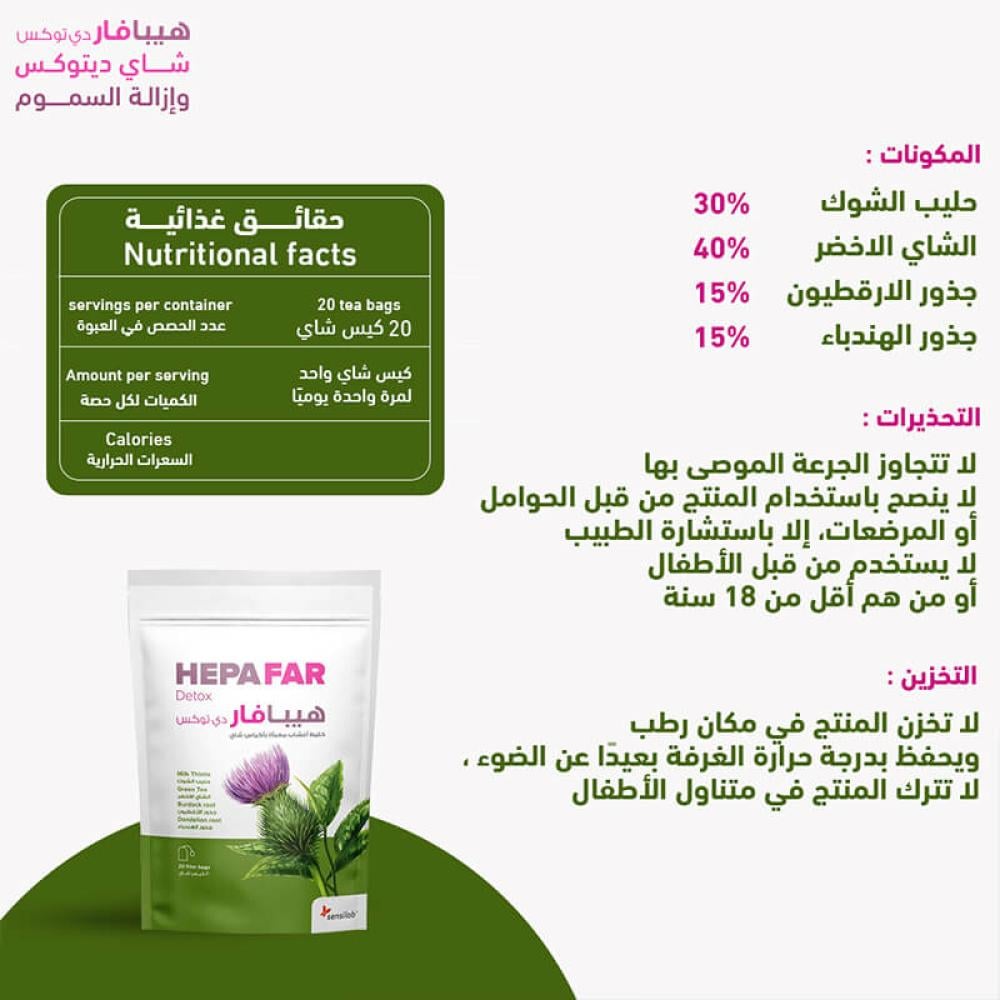 شاي هيبافار ديتوكس من سينسيلاب هو مزيج قوي من الأعشاب الطبيعية، مصمم خصيصًا لتنقية الكبد ودعم الهضم وتحفيز حرق الدهون. تأتي هذه التركيبة الفريدة في أكياس شاي سهلة الاستخدام، مما يجعلها الخيار المثالي لمن يسعون إلى تطهير لطيف وطبيعي للجسم. مكونات الشاي 100% طبيعية، مما يجعله خاليًا من أي إضافات صناعية.