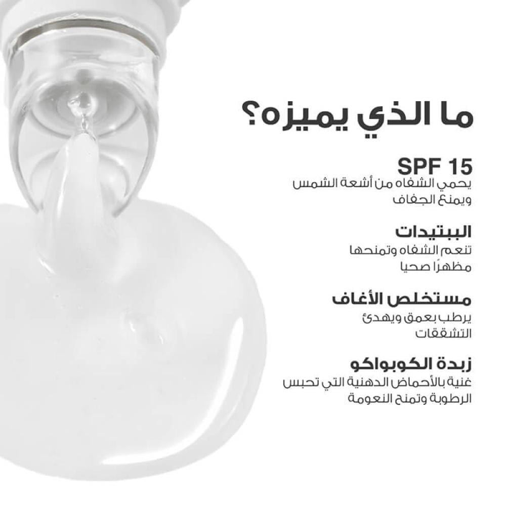 - حماية من الشمس: يحتوي على عامل حماية +15 لحماية الشفاه من أشعة الشمس الضارة.